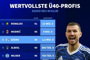 德转列现役年龄40岁及以上的球员身价排行