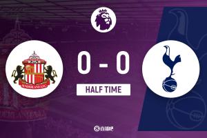 半场结束,桑德兰0-0热刺。