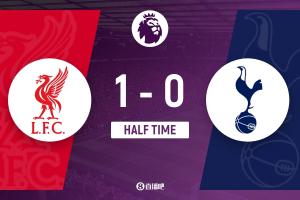 半场结束,利物浦暂1-0热刺。